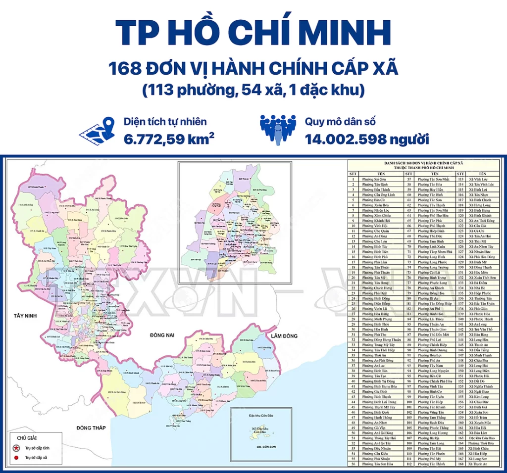 Cập nhật chính thức Địa chỉ trụ sở 168 phường, xã, đặc khu của TP.HCM mới